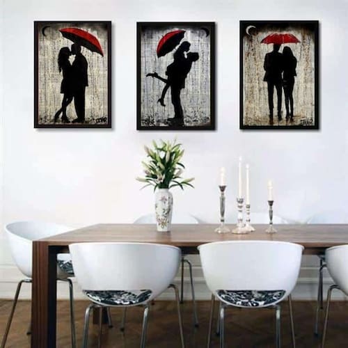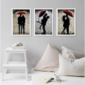 Kit 3 quadros românticos casal sombrinha 45x34cm