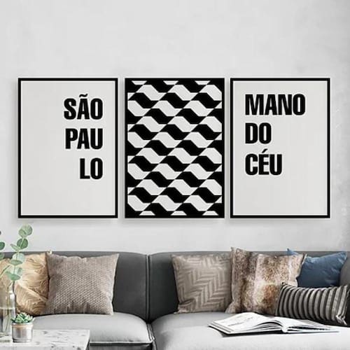 Kit 3 quadros são paulo mano do céu 33x24cm Moldura: madeira branca