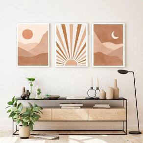 Kit 3 quadros sol e lua - boho marrom 24x18cm Cor: moldura branca Informações do produto tire todas as suas dúvidas no descritivo abaixo: decoração para quarto, sala, cozinha, escritório, área gourmet e muito mais. Chega de paredes vazias medidas - cada peça tem 24x18cm a5 . Material do papel - papel fotográfico brilhante de altíssima resolução acabamento - todos os quadros são acompanhados de uma película de acetato para proteção da imagem. - os quadros são embalados de forma segura com plástico bolha com camada dupla de acordo com o tamanho dos quadros. Garantia - garantia de 3 meses. Meu quadro chegou. Como posso fixá-lo Você precisa apenas de um martelo e um prego, pois os quadros já vão acompanhados de penduradores. Esta é a forma mais indicada. Caso prefira, você pode utilizar uma fita dupla face neste caso, sugerimos de alta qualidade para evitar que descole e seu quadro caia . Como posso limpar meu quadro A limpeza é feita como um móvel comum da sua casa. Apenas um pano seco ou espanador são suficientes para tal