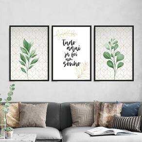 Kit 3 quadros tudo já foi um sonho 45x34cm - com vidro Moldura: madeira branca Informações do produto tire todas as suas dúvidas no descritivo abaixo: decoração para quarto, sala, cozinha, escritório, área gourmet e muito mais. Chega de paredes vazias medidas - cada peça tem 45x34cm a3 . Material do papel - papel fotográfico brilhante de altíssima resolução acabamento - todos os quadros são acompanhados de vidro para proteção da imagem. - moldura em madeira maciça na cor preta e pendurador . - os quadros são embalados de forma segura com plástico bolha com camada dupla de acordo com o tamanho dos quadros. Garantia - garantia de 3 meses. Meu quadro chegou. Como posso fixá-lo Você precisa apenas de um martelo e um prego, pois os quadros já vão acompanhados de penduradores. Esta é a forma mais indicada. Como posso limpar meu quadro A limpeza é feita como um móvel comum da sua casa. Apenas um pano seco ou espanador são suficientes para tal