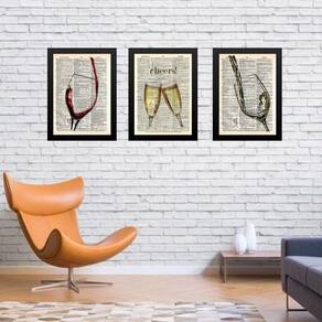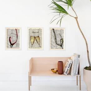 Kit 3 quadros vintage bar vinhos e espumante 45x34cm - com vidro Moldura: madeira preta Informações do produto tire todas as suas dúvidas no descritivo abaixo: decoração para quarto, sala, cozinha, escritório, área gourmet e muito mais. Chega de paredes vazias medidas - cada peça tem 45x34cm a3 . Material do papel - papel fotográfico brilhante de altíssima resolução acabamento - todos os quadros são acompanhados de vidro para proteção da imagem. - moldura em madeira maciça na cor preta ou branca conforme produto escolhido e pendurador . - os quadros são embalados de forma segura com plástico bolha com camada dupla de acordo com o tamanho dos quadros. Garantia - garantia de 3 meses. Meu quadro chegou. Como posso fixá-lo Você precisa apenas de um martelo e um prego, pois os quadros já vão acompanhados de penduradores. Esta é a forma mais indicada. Como posso limpar meu quadro A limpeza é feita como um móvel comum da sua casa. Apenas um pano seco ou espanador são suficientes para tal