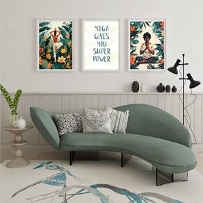 Kit 3 quadros yoga - super poderes 45x34cm Cor: moldura preta Informações do produto tire todas as suas dúvidas no descritivo abaixo: decoração para quarto, sala, cozinha, escritório, área gourmet e muito mais. Chega de paredes vazias. Medidas - cada peça tem 45x34cm a3 . Material do papel - papel fotográfico brilhante de altíssima resolução acabamento - todos os quadros são acompanhados de uma película de acetato para proteção da imagem. - os quadros são embalados de forma segura com plástico bolha com camada dupla de acordo com o tamanho dos quadros. - de 3 meses. Meu quadro chegou. Como posso fixá-lo Você precisa apenas de um martelo e um prego, pois os quadros já vão acompanhados de penduradores. Esta é a forma mais indicada. Caso prefira, você pode utilizar uma fita dupla face neste caso, sugerimos de alta qualidade para evitar que descole e seu quadro caia . Como posso limpar meu quadro A limpeza é feita como um móvel comum da sua casa. Apenas um pano seco ou espanador são suficientes para tal Marca: Não Informado
