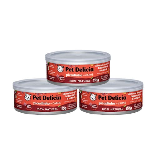 KIT 3 Ração Úmida Pet Delícia Gatos Picadinho de Carne 110g