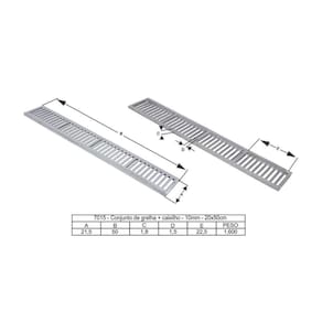 03 Ralo Grelha Linear com Caixilho em Alumínio Escovado 20x50cm.
