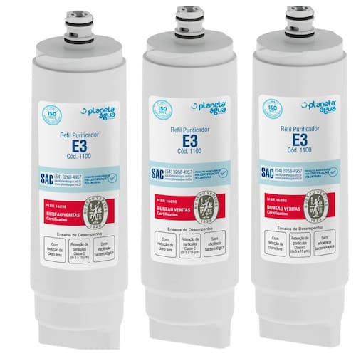 Fácil de instalar, refil girou/trocou, Econômico - 1 refil = 200 galões de 20 litros de água mineral ou 8000 garrafas pet de 500 ml, Alta qualidade e custo baixo, embalagem econômica, Vida Útil: 4000 litros, Vazão: 60 litros/hora, Com Redução de Cloro Livre, Retenção de Partículas: Classe C 5 a 15 micraTipo