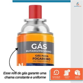 Vantagens: Versatilidade: Ideal para diversas atividades ao ar livre e em situações de emergência. Eficiência: Garante uma chama constante e uniforme, otimizando o consumo de gás. Facilidade de uso: Basta rosquear o refil no fogareiro e ajustar a chama.