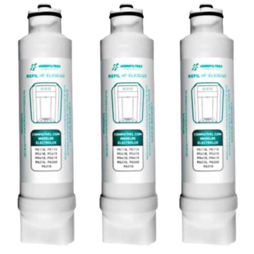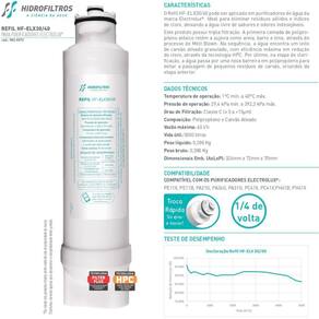 O Refil HF-ELX 30/40 pode ser aplicado em purificadores de água da marca Electrolux. Ideal para eliminar resíduos sólidos e índices de cloro, deixando a água livre de sabores e odores indesejáveis. Este produto possui tripla filtração. A primeira camada de polipropileno atóxico retém a sujeira como areia, barro e limo, através do processo de Melt Blown. Na sequência, a água encontra um leito de carvão ativado granulado, com eficiência máxima em redução do cloro, através da tecnologia HPC. Por último, na etapa de clarificação, a água passa por uma nova barreira em polipropileno para evitar a passagem de pequenos resíduos de carvão, oriundos da etapa anterior. Compatível com os Purificadores Electrolux: PE11X, PE11B, PA21G, PA26G, PA31G, PC41B, PC41X, PH41B, PH41X Dados Técnicos:Temperatura de operação: 1ºC a 40ºC.Pressão de operação: 29,4 kPa mín. a 392,3 kPa máx.Grau de Filtração: Classe C (= 5 a <15µm)Composição: Polipropileno e Carvão AtivadoVazão máxima: 60 l/hVida útil: 5000 litrosPeso líquido: 0,288 KgPeso bruto: 0,388 KgDimensionais Emb. (AxLxP): 324mm x 72mm x 70mmMarca: Hidrofiltros. Itens Incluso:3 Refil HF-ELX 30/40. ACOMPANHA MANUAL DE INSTALAÇÃO Instalação rápida e prática. As marcas citadas são propriedades de seus respectivos fabricantes e aparecem apenas para demonstrar a compatibilidade deste produto.