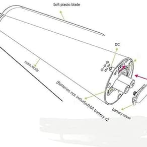 Especificações: Material: abs+pvc Tamanho: 25 x 9cm Cor: preto Fonte de alimentação: 2 baterias aa (não incluídas)