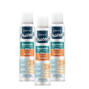 Kit 3 Repelentes Spray Com Protetor Solar FPS30 Secagem Rápida 150ml Cada - Above A gente sabe que se cuidar exige bastante dedicação, e os produtos 2 em 1 são uma mão na roda quando o assunto é cuidado e praticidade. Se a aplicação em spray já é prática, com Above Protect Repelente + Protetor Solar essa facilidade vai reinar no seu dia a dia. São 10 horas de proteção contra insetos, pois, esse produto é enriquecido com aloe vera, vitamina E e DEET composto responsável por inibir a ação dos insetos na nossa pele . Tudo isso se alia a uma proteção solar de fator 30 com secagem rápida, evitando que os raios UVA e UVB prejudiquem a pele também. Modo de Uso: Agite bem a embalagem antes de usar, aplique o produto sobre a pele, nas áreas expostas e que deseja proteger, pressionando o aplicador a uma distância de 15 cm. Em seguida é preciso massagear a área até que o produto penetre completamente. Para uso no rosto, coloque o produto nas mãos e passe evitando o contato direto com os olhos, boca e narinas. Depois do uso, lavar bem as mãos com água e sabão. Recomenda-se a reaplicação a cada 7 horas e não deve ser utilizado mais que 03 vezes ao dia. Principais Características: - Produto Inovador 2 em 1 - Fácil Aplicação Spray - Com Proteção UVA/UVB - Com FPS 30 - Não é Oleoso - Garante Até 10 Horas de Proteção Contra Insetos - Possui Secagem Rápida - Reaplicar a Cada 7 Horas - Não Utilizar Mais de 03 Vezes ao dia - Enriquecido com Aloe Vera, Vitamina E, DEET Inibidor de Insetos e Óleo de Andiroba - Família Olfativa: notas de saída: lavanda e alecrim, notas de corpo: rosa, jasmim, lilás e gerânio, notas de fundo: mungo, cravo, baunilha, patchouli e musk. Especificações Técnicas: - Conteúdo da Embalagem: 3 Repelente Com Protetor Solar 150ml - Above - Dimensões do Produto AxLxP : 18,4 x 4,5 x 4,5cm -composição/material: alcohol, diethyltoluamide, parfum, butylphenyl methylpropional, linalool, methylal, aloe barbadensis extract, carapa guaianensis seed oil, glycerin, tocopheryl acetate, BHT, butane, isobutane, propane, diethyl toluamide Concentração = 9,80% . - Peso: 0,090kg - Contém 150ml - : 30 dias Contra Defeitos de Fabricação Pelo Fabricante - Código do Fabricante: 6100118 - EAN: 7899674028365 - Marca: Above Imagens Meramente Ilustrativas. As cores e estampas podem variar de acordo com o lote do fabricante.