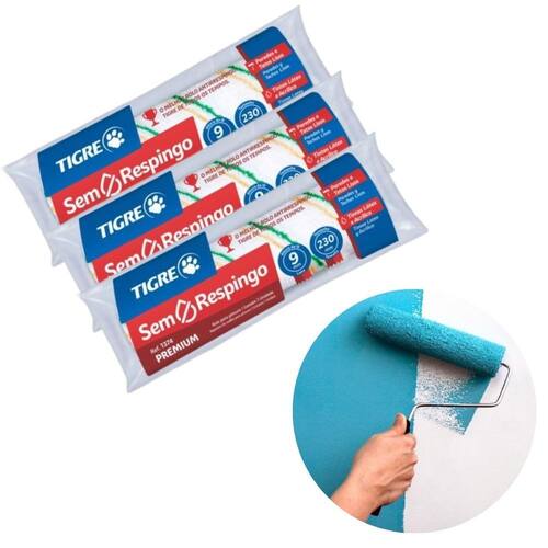 Kit 3 Rolos Antirespingo Premium Poliamida Tigre Pinte com mais eficiência e sem sujeira O Kit com 3 Rolos Antirespingo Premium da Tigre é ideal para quem busca um acabamento impecável em superfícies lisas, sem respingos indesejados. Indicado para tintas à base de água, ele facilita a pintura e evita desperdícios. Qualidade profissional ao seu alcance. Fabricados com manta de poliamida de alta performance, os rolos garantem excelente retenção e liberação de tinta, promovendo um acabamento uniforme, com cobertura superior e menor esforço. A marca Tigre assegura durabilidade e confiança no resultado final. Mais praticidade para o seu dia a dia. Fáceis de usar e limpar, os rolos são perfeitos tanto para profissionais quanto para quem faz pequenos reparos em casa. O kit com 3 unidades oferece ótimo custo-benefício e reduz a necessidade de reposições constantes. DIFERENCIAIS: Acabamento sem respingos: Ideal para ambientes internos com pintura precisa. Alta durabilidade: Manta premium de poliamida que suporta diversas lavagens. Desempenho superior: Maior rendimento com menos esforço e tempo de aplicação. ESPECIFICAÇÕES TÉCNICAS: Material: Manta de poliamida com 9mm de altura Compatibilidade: Tintas à base de água látex, acrílica e PVA Tamanho do rolo: 23 cm de largura Cabo com encaixe padrão para prolongadores Cor da manta: Branca com listras amarelas ITENS INCLUSOS: 3 Rolos Antirespingo Premium 23cm - Tigre Marca: Não Informado