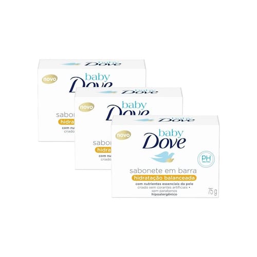 SABONETE EM BARRA DOVE BABY HIDRATAÇÃO BALANCEADA Com nutrientes essenciais da pele O Sabonete em Barra Baby Dove Hidratação Balanceada é feito com nutrientes essenciais da pele e tem pH neutro. Foi desenvolvido especialmente para ajudar a pele a reter sua hidratação natural, deixando a pele do bebê macia e nutrida. Nossa delicada fórmula: Tem pH neutro. É hipoalergênica. Comprovadamente minimiza os riscos de alergia com um perfume desenvolvido para a delicada pele do bebê. É mais suave e hidratante do que qualquer outro sabonete em barra comum de bebê. Marca: Não Informado