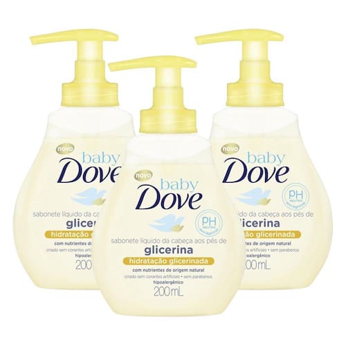 Kit 3 Sabonetes Líquido Baby Dove Hidratação Glicerinada da Cabeça aos Pés 200ml