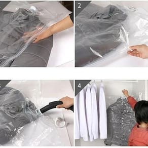 Kit 3 Organizador A Vácuo Com Cabide 67 x 109 G A solução ainda mais prática para quem busca armazenar e organizar objetos de forma fácil, rápida, inteligente e ainda reduzir o espaço em até 3 vezes o volume do objeto, protegendo contra traças, insetos, mofo, poeira, sujeira, odores e umidades Preço por 3 Unidades Características - Material: Plástico - Saco Reutilizável - Material impermeável - Possui gancho para pendurar no guarda roupa - Medidas: 67 cm (Largura) x 109 (Comprimento) - Evita aparecimento de mofos, fungos e mau cheiro - O ar pode ser drenado por aspirador de pó ou bomba Cuidados - Não armazenar objetos cortantes ou pontiagudos - Não utilize o organizador para armazenar alimentos - Não recomendado para peças de couro Ficha técnica - Cor: Transparente