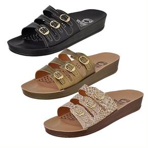 Kit com 3 sandálias ortopédicas confeccionadas em material de alta qualidade e resistência. Solado injetado, feito de PU para maior conforto aos seus pés, proporcionando maciez e leveza ao uso diário. Indicado no tratamento de esporão, joanete e outros fatores, ajuda a eliminar dores nas junções e músculos. Expresse a sua personalidade com muito estilo e conforto. A sandália ajusta perfeitamente ao desenho da base do pé, massageando e estimulando a rede sanguínea dos pés, elevando o nível de circulação do sangue, assim diminuindo o inchaço.