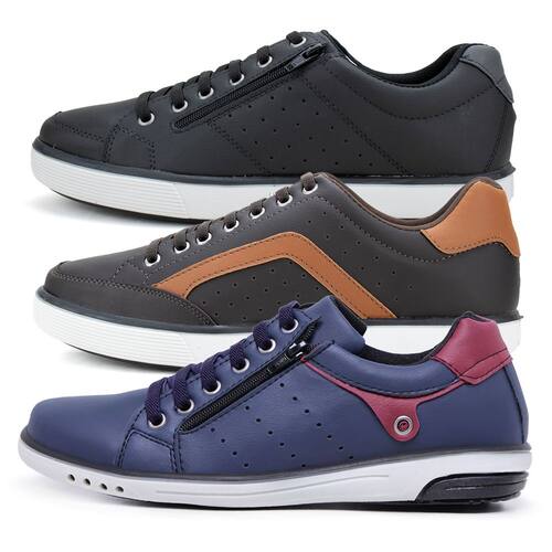 Kit 3 Sapatênis Casual Masculino Fechamento Elástico e Zíper - 37 - Marrom Chocolate