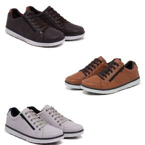 Kit 3 Sapatênis Casual Masculino Zíper Lateral e Elástico - 42 - Laranja