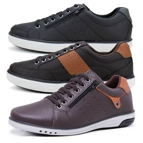 Kit 3 Sapatênis Casual Masculinos Fechamento Elástico Zíper - 38 - Marrom Chocolate