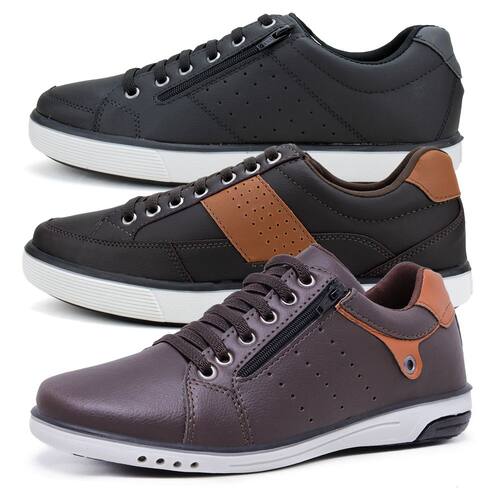 Kit 3 Sapatênis Casual Masculinos Fechamento Elástico Zíper - 44 - Marrom Chocolate