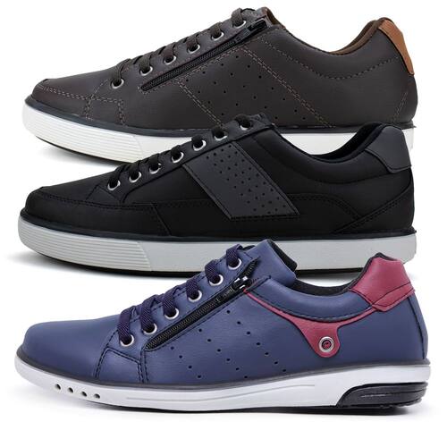 Kit 3 Sapatênis Masculinos Com Fechamento Elástico e Zíper - 41 - Azul Claro