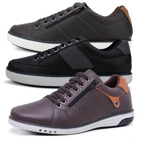 Kit 3 Sapatênis Masculinos Com Fechamento Elástico e Zíper - 37 - Preto