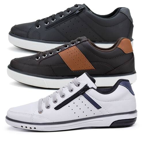 Kit 3 Sapatênis Masculinos Fechamento Em Elástico e Zíper - 42 - Branco