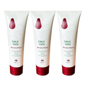 AS IMAGENS SÃO MERAMENTE ILUSTRATIVAS E PODEM SOFRER VARIAÇÕES DE COR E PEQUENOS DETALHES DE ACORDO COM O SEU MONITOR, ILUMINAÇÃO DO AMBIENTE E ATÉ MESMO A SUA PERCEPÇÃO VISUAL.Kit 3 Shampoo Doce Raiz Natural com Mais Brilho e Maciez 250ml