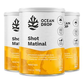 Kit 3 shot matinal ocean drop vegano 150g sabor limão shot matinal ocean drop vegano 150g sabor limão é um suplemento em pó sabor limão, ideal para começar o dia com energia e disposição. A fórmula vegana é enriquecida com vitaminas essenciais, como a, b6, b12 e c, para fornecer um apoio nutricional completo. Não contém glúten e é uma ótima escolha para quem deseja complementar a dieta de forma prática e deliciosa. Ingredientes: Vitaminas a, b6, b12 e c ingredientes vegetais naturais aromatizante natural de limão Sugestão de uso: Diluir 1 dose 5g em água ou na bebida de sua preferência, uma vez ao dia. Informações importantes: Produto vegano, livre de glúten e derivados de origem animal. Não recomendado para gestantes, lactantes ou crianças. Este produto não é um . Marca: Não Informado