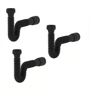 Kit com 3 unidades - Sifão Sanfonado Universal Preto - Banheiro Cozinha Tanque