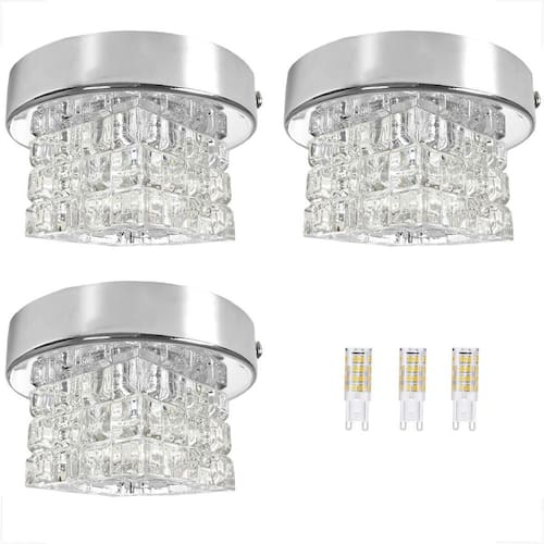 Kit 3 Spot De Cristal Sobrepor Quadrado Prata Polido Bet45 + Led Plafon de sobrepor prateado de cristal k9