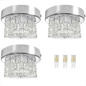 Kit 3 Spot De Cristal Sobrepor Quadrado Prata Polido Bet45 + Led