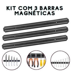 Com o Kit 3 Suporte Barra Magnética Cozinha Churrasqueira 50Cm, você terá suas facas e ferramentas sempre à mão, de forma organizada e segura. Não perca tempo e adquira já o seu kit! Marca: Não Informado