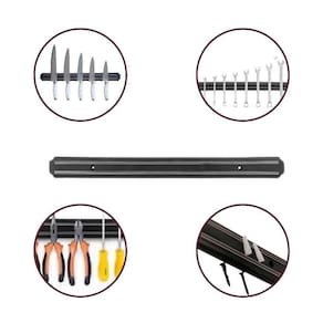 Além de ser ideal para a cozinha, a barra magnética também pode ser utilizada em eletrônicas e oficinas. Ela ajuda a organizar e visualizar suas ferramentas de maneira prática e eficiente.