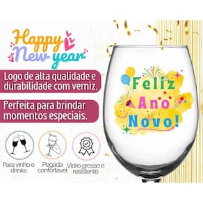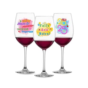 Especificações: Altura: 22 cm Diâmetro: 7 cm Capacidade: 465ml Material: Vidro Contém: 3 Taças De Vinho Personalizadas Ano Novo Marca: Não Informado