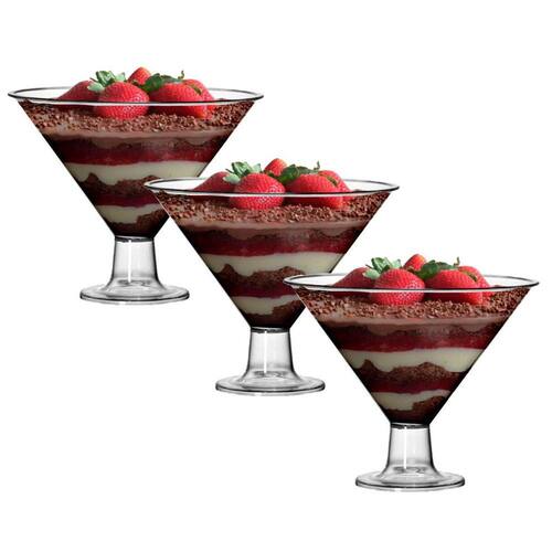 Kit 3 Taças de Acrilico para Bolos, Doces e Sobremesas As Taças de Acrílico estão super em alta porque são versáteis, lindas e modernas.Ideal para sobremesas, salada de Frutas, bolo Gelado, gelatina, marshmallow, bomboniere e armazenar cápsulas de café.Conheça as Vantagens do Acrílico:- Acrílico Cristal possui Qualidade Superior- Foi Feito para Durar-10x Mais resistentes a impactos do que um vidro da mesma espessura- Muito mais leve, nas mesmas proporções chega a 40% que o vidro- Mais praticidade para servir- 92% Transmitância transparência - Vidro 84%- Altamente Resistente á intempéries sol, chuva, poluição etc... - Flexibilidade- Indispensável em Casa, ideal para Comércios, Festas, Eventos e Buffets.SUCESSO COMPROVADO, quem utiliza Aprova e RecomendaCuidados com Acrílico:Não colocar no freezer, não utilizá-lo no Micro-ondas.Não suporta altas temperaturas como panelas etc...