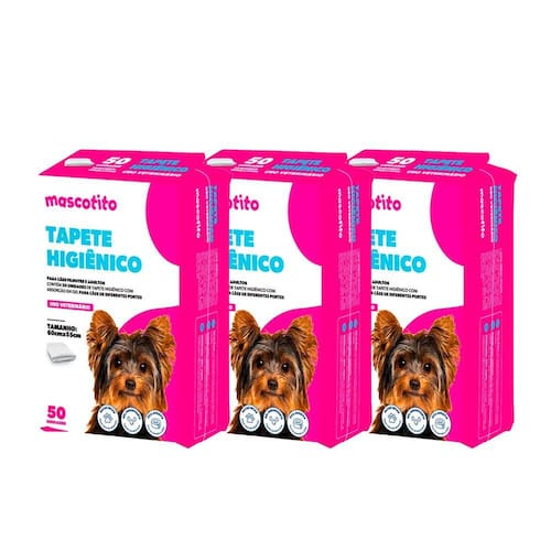Kit 3 Tapetes Higiênico Mascotito 60x55cm C/50 Unidades - Indicado para cães; - Indicado para raças pequenas; - Alta tecnologia; - Tecnologia com extra gel; - Máxima proteção contra vazamentos; - Tamanho 60x55cm. O Tapete Higiênico Mascotito é indicado para cães de filhotes e adultos de pequeno porte. Ele possui uma alta tecnologia com extra gel, garantindo uma máxima proteção contra vazamentos. O tapete pode ser utilizado tanto em casa como em apartamentos. Desenvolvido com matérias de qualidade, resultando em um produto discreto, de fácil armazenamento proporcionando absorção na medida certa. Sua fabricação conta com 5 camadas de proteção e canais de absorção que garantem uma maior velocidade na absorção do xixi. Além disso conta com 4 fitas reposicionáveis. Modo de usar Tire o tapete da embalagem. Desdobre-o. Retire os papéis aplicados nos 4 cantos da parte inferior do tapete e fixe-o no chão com o lado dos adesivos voltados para baixo. Medidas aproximdas 60cm x 55cm.