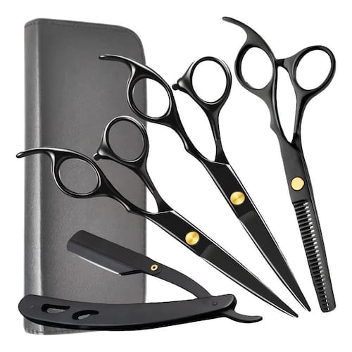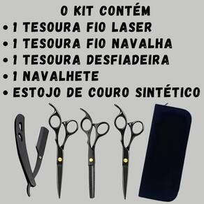 Kit composto por: 1 Tesoura Fio Laser 6.0 polegadas 1 Tesoura Fio Navalha 6.0 polegadas 1 Tesoura Desfiadeira 6.0 polegadas 1 Navalhete 1 Estojo de material sintético. Para realizar um bom corte de cabelo, você precisa ter um equipamento apropriado, pois ninguém gosta de usar equipamentos que te deixam na mão ou então que mastigue o cabelo na hora de fazer o corte, por isso você precisa de tesouras que o ajude a fazer o trabalho direito para que o seu cliente goste de seu trabalho e volte mais vezes. Você precisa ter no mínimo tesouras de corte de cabelo profissionais com excelentes qualidades, com acabamento mais leves assim como essa, pois só quem já passou por esses problemas de não ter equipamentos adequados sabe o que é ficar frustrado. Por isso elas fazem toda a diferença no acabamento de um bom corte. O Material é de alta qualidade, durável para uso mais longo. É também anti-estático sem ferir ou mastigar o cabelo, especialmente para aquelas mulheres com cabelo longo e danificados. Kit acompanha um estojo de pequeno porte, fácil de ser carregado para qualquer lugar, compacto e leve Kit perfeito para quem deseja trabalhar com produto 100% novo e de alta qualidade Ferramentas ideias para cabeleireiros e barbeiros. do vendedor: 30 dias Marca: Não Informado Ean: 79056009373416
