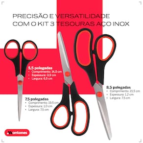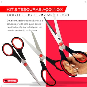 O Kit com 3 tesouras inoxidáveis é a solução perfeita para quem busca qualidade e eficiência tanto em uso doméstico quanto profissional. Com lâminas afiadas e feitas de material inoxidável, essas tesouras são essenciais para garantir cortes precisos em diversas superfícies, como papel, tecido, uso geral na cozinha e EVA.