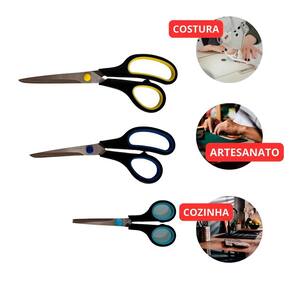Kit 3 Tesouras Inox Multiuso Costura Artesanato Escritório
