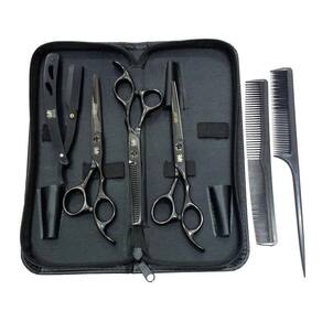 Kit perfeito para quem deseja trabalhar com produtos 100% novos e de alta qualidade Ferramentas ideais para cabeleireiros e barbeiros. Tesouras com acabamento mais leves e resistentes. Suas composições preservam o funcionamento e afiação das tesouras por mais tempo. A navalha é indicada para barbear, dar acabamento ou finalizar cortes.Especificações das tesouras:1 Tesoura Fio Navalha 6.0 polegadas1 Tesoura Desfiadeira 6.0 polegadas1 Tesoura Fio Laser 6.0 polegadas1 Navalha Para Lâmina Lisa1 Kit 10 Pentes Profissionais