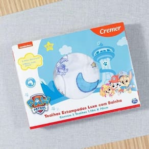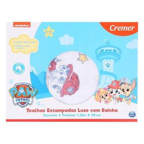 Toalha fralda Cremer linha Luxo Patrulha Canina com 03 peças, confeccionado em algodão com toque macio. Modelo com bainha e estampa. A linha luxo é versátil e ajuda as mamães no cuidado dos bebês. É a nossa linha de maior qualidade, confeccionada com tecido duplo 100% de fibra de algodão e adição de amaciante para torna-las ainda mais fofinhas.