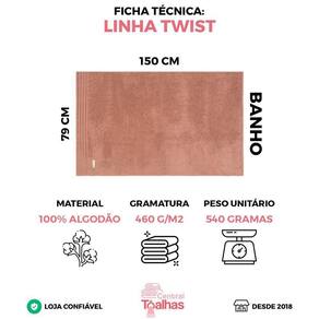 Confeccionadas em 100% algodão, as Toalhas Twist são a opção perfeita para quem busca qualidade, durabilidade e alta absorção da água. Através de sua gramatura de 460g/m, as toalhas apresentam uma estrutura resistente, macia, absorvente e duradoura, garantindo todo o conforto que você precisa no seu pós-banho.