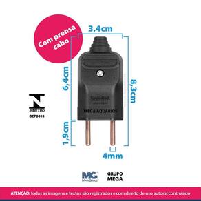 Plugue tomada desmontável 2 pinos de 10A com prensa cabos - a granel Composição do kit: 3 plugues 2p 10a com prensa cabos Escolha a cor da tomada no botão do anúncio. Os plugues desmontáveis da MarGirius são utilizados em equipamentos eletroeletrônicos e instalações elétricas em geral, são resistentes e com excelente acabamento. Características: Desmontável Resistente 180º reto Melhor acabamento do mercado 2 pinos Com prensa cabos Compatíveis com diversos tipos de cabos , PP plano e PP circular Corpo em material termoplástico de alta qualidade Ligação dos condutores através de bornes parafusados 10A em tensões de até 250V Decape e desponte adequados são marcados no próprio produto. Produtos Certificados pelo INMETRO no requisito de SEGURANÇA pelo organismo de certificação Bureau Veritas BV - OCP0018 Atendem ao padrão brasileiro de plugues e tomadas NBR 14136 Não acompanha cabo Produto testado e aprovado por Mega Aquários Compre nesse anúncio com segurança diretamente com um revendedor oficial Margirius. Especificações técnicas: Marca: Margirius Modelo: Plugue 2P 180º de 10A com prensa cabos Material: termoplástico de alta qualidade, pinos e contatos em latão Capacidade elétrica: 10A em tensões de até 250V INMETRO: OCP0018 Embalagem: a granel Cor: escolha a cor na lateral do anúncio. Obrigado pela visita e boas compras ATENÇÃO Nossas imagens e textos são registrados e com direito de uso autoral controlado e reservado a essa loja e as lojas parceiras devidamente autorizadas em contrato. Marca: Não Informado