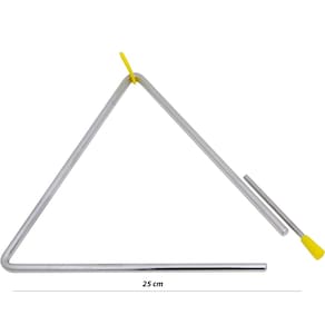 O Triângulo Musical Cromado 10” (25cm) da New York é fabricado em aço com acabamento cromado, oferecendo durabilidade e um som brilhante. Este instrumento musical é fácil de usar e ideal para estimular o aprendizado musical, sendo acompanhado por uma baqueta com ponta de plástico para produzir um som claro e definido ao tocar.Especificações - Modelo: 10”- Tamanho: 25 cm- Acabamento: Cromado- Material: Aço- Peso Aprox.: 250gConteúdo da Embalagem- 3 Triângulos Musicais Cromados 10” 25cm New York*imagens meramente ilustrativas Marca: Não Informado