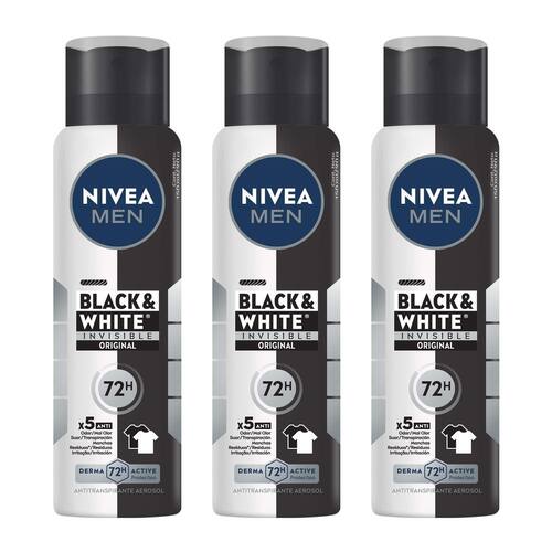 O que é? NIVEA MEN Desodorante Antitranspirante Aerossol Invisible Black & White é um poderoso antitranspirante masculino que oferece proteção eficaz por 48 horas, além de evitar manchas nas roupas. Para que serve? Eliminando 99,9% das bactérias, ele previne manchas brancas em roupas pretas e manchas amarelas em roupas brancas. Sua fórmula exclusiva contém 2x mais agentes antitranspirantes e minerais, proporcionando a melhor proteção contra manchas e suor. Além disso, NIVEA MEN Desodorante Antitranspirante Aerossol Invisible Black & White é livre de álcool etílico e corantes, garantindo cuidado e segurança para sua pele. Com sua fórmula avançada, você ficará livre de manchas, suor e mau odor. Experimente agora mesmo! Benefícios e diferenciais: - Você livre de manchas, suor e mau odor - Sem álcool etílico e corantes - 2x mais agentes antitranspirantes e minerais - A melhor proteção contra manchas e suor - Proteção por 48 horas