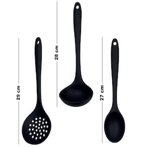 Ideais para proteger suas panelas antiaderentes de arranhões, os talheres que compõem esse kit são fabricados em material de silicone de ótima qualidade, também são resistentes a altas temperaturas e livres de BPA. – Fácil de limpar: podem ser lavados na máquina de lavara louça – Duráveis, flexíveis, não se deformam – Não riscam a panela – Possuem furo para pendurar Contém: 1 Concha (28cm x 7,5cm) 1 Colher multiuso (27cm x 6cm) 1 Escumadeira (29cm x 8,5cm) Marca: Não Informado