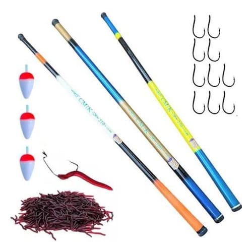 Kit 3 Vara Pesca Telescópica 2,10M 2,70M E 3,00 Metros Fibra