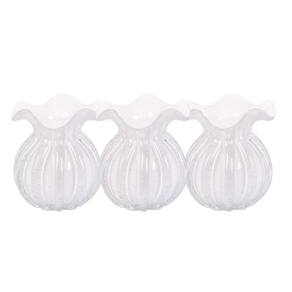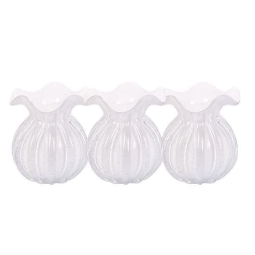 Kit 3 Vaso de Vidro Murano Flor Plantas Arranjos Branco Leitoso Trouxinha 10x11cm Wolff