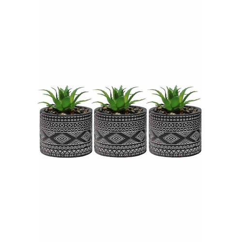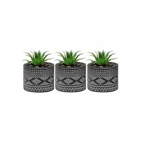 Kit 3 vasos em cimento com planta artificial na cor preto.