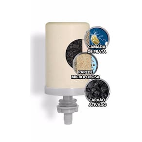 - Revestimento de prata coloidal (parte interna da vela) + carvão ativado: trabalham para filtrar e reduzir odores, sabores e o teor de cloro, reduzindo a presença de bactérias da água.
