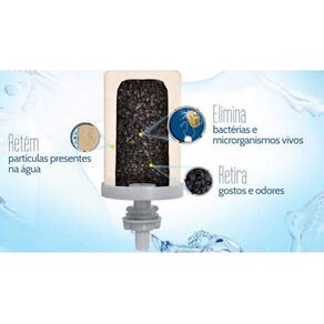 Possui uma parede em material cerâmico microporoso que filtra a água por gravidade, sem adição de produtos químicos, reduzindo impurezas e retendo partículas sólidas, o que garante uma água saudável e livre de microorganismos.